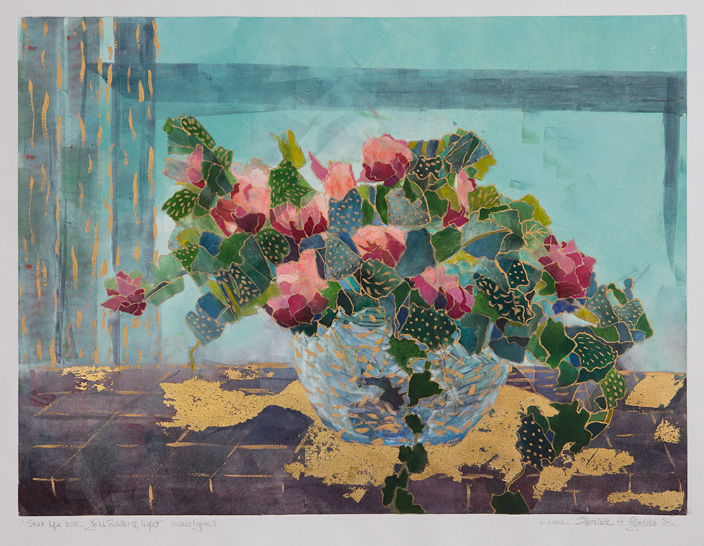 Still Life with Gold Puddles of Light, 2002 Monotype with gold leaf, 1/1 17.75” x 23.75”